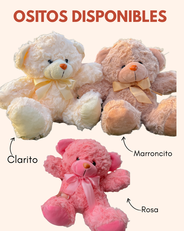 - Osito de peluche con moño rojo.