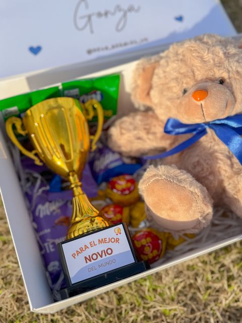 Incluye osito, golosinas, frase personalizada y trofeo a elección 🏆