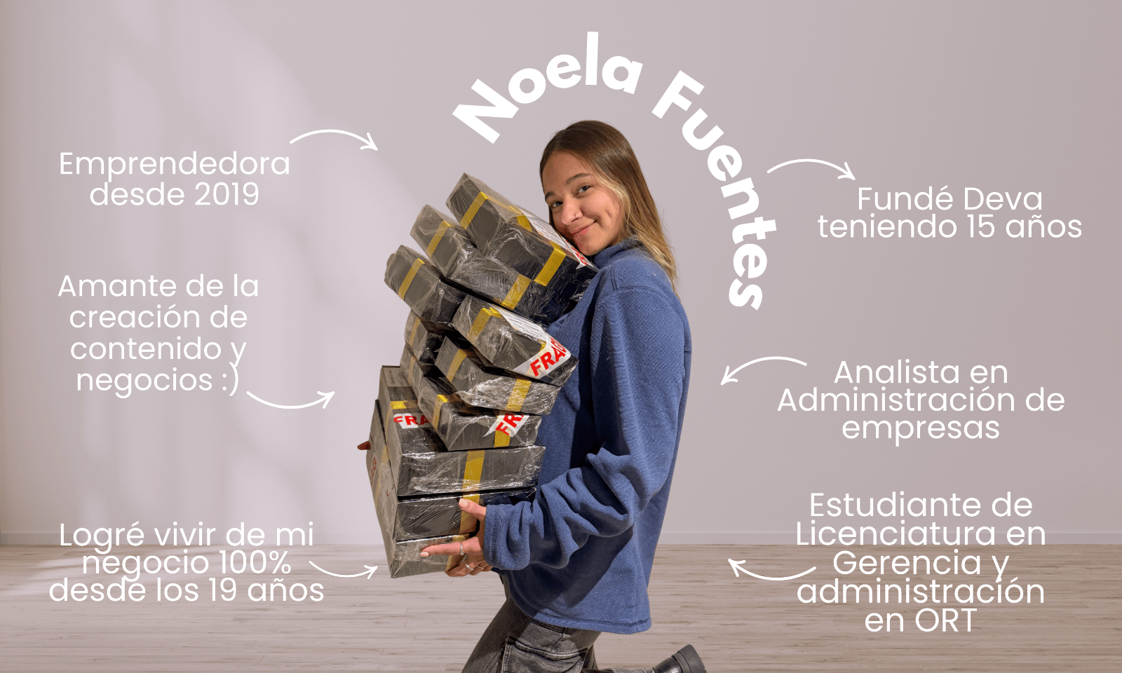 A los 19 años me independicé completamente y logré vivir 100% de mi emprendimiento. Hoy, con 21 años, sigo trabajando todos los días en hacer crecer este proyecto que ya forma parte de mi vida. Detrás de Deva, estoy yo en cada detalle: diseño de productos, compras, producción, logística, atención, creación de contenido... todo.